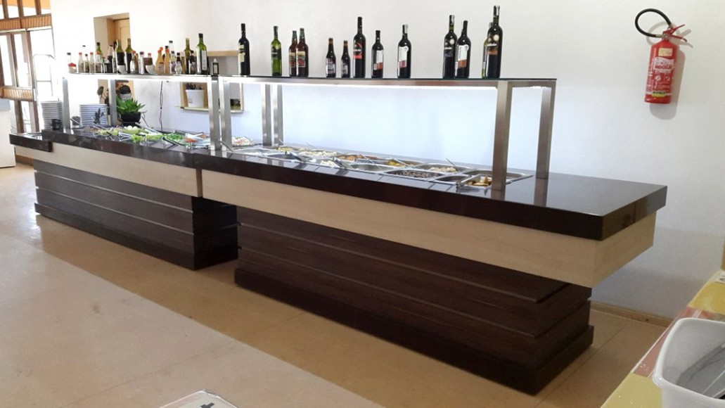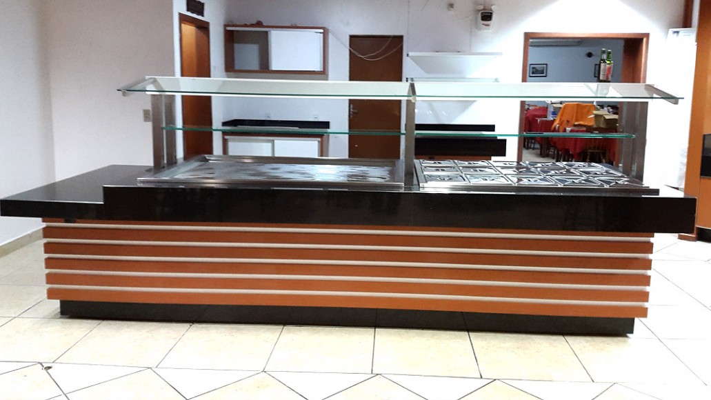 Os buffets para quentes e frios são confeccionados com estrutura em metal, com proteção anti-corrosão.